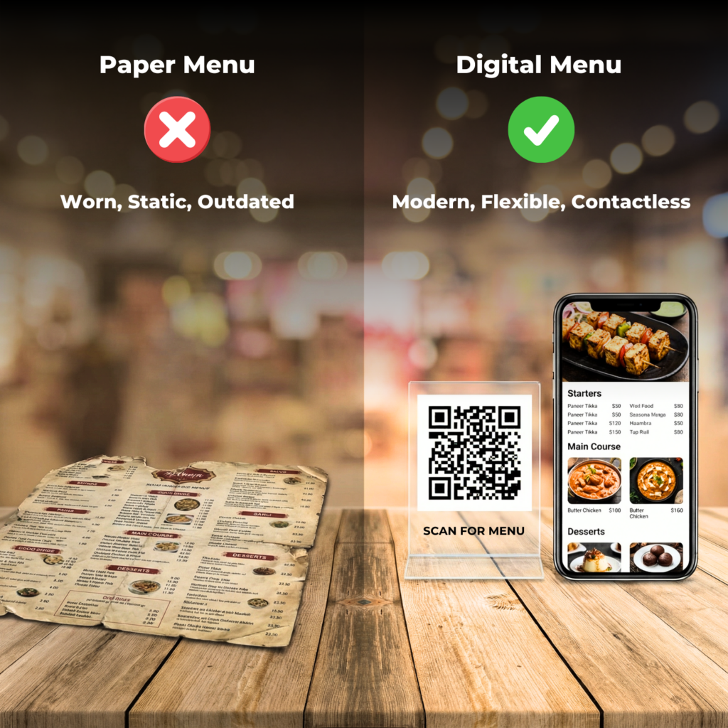 Replace dirty, outdated paper menus with a beautiful, contactless QR menu. Update prices instantly, add photos, and serve customers faster.
